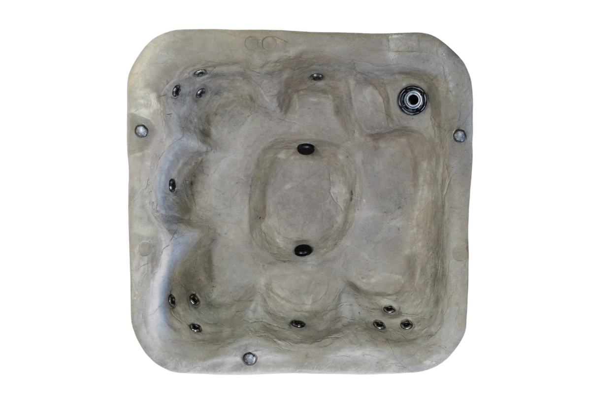 Introducing our newest modern above-ground spa, with NO digging required! Covered in a cobblestone style rock creating the contemporary look that will blend right into your home.