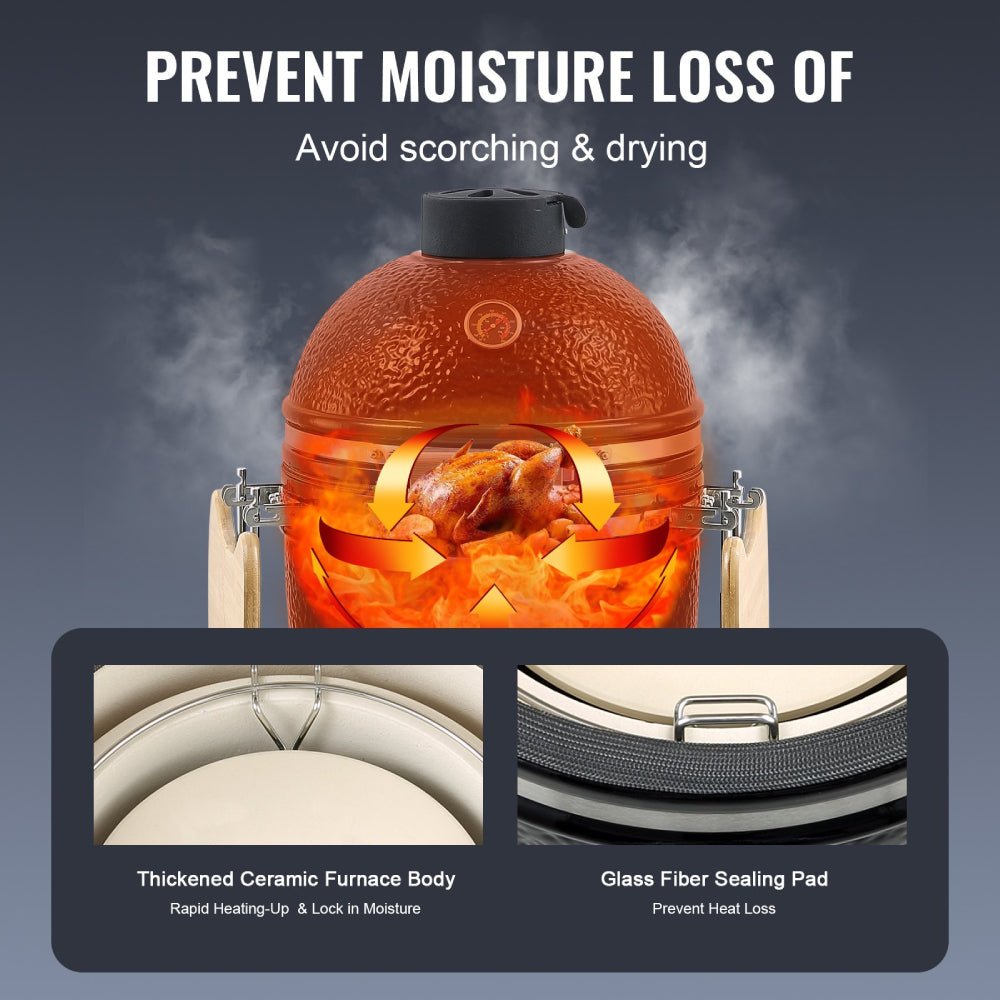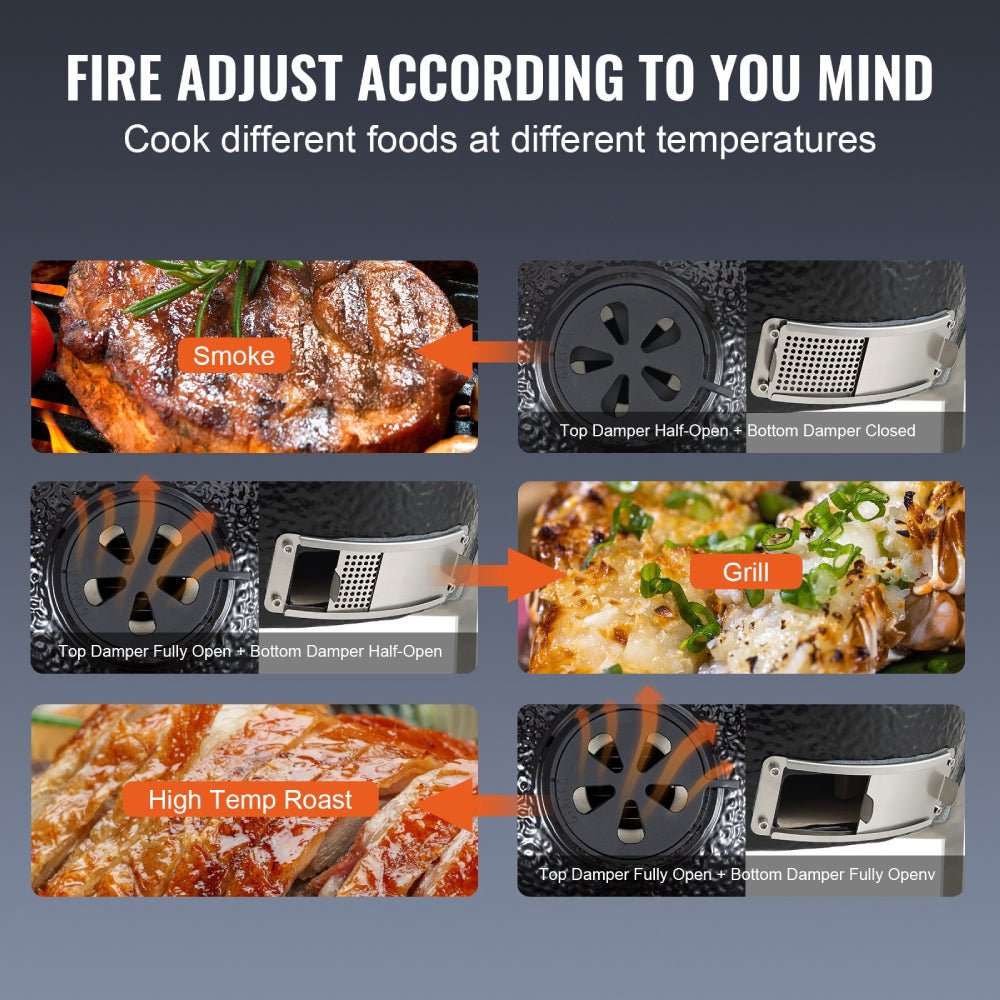 With our 1-inch thick Ceramic furnace wall and glass fiber gaskets, you'll be able to lock in temperature and humidity and prevent heat loss. Plus, you can control the internal temperature by adjusting the intake volume with the top and bottom air vents. And don't forget, we include a charcoal ash cleaning brush and rain cover to help keep your grill safe and clean. Ready set, let's fire up the magic and get grilling!