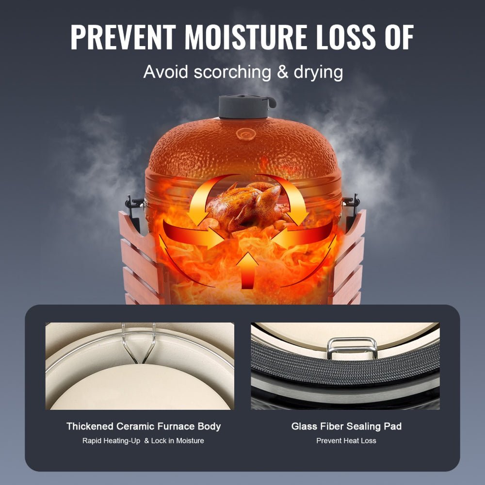 The impressive size and lightweight design make this 24" Ceramic Barbecue Grill Smoker easy to move and store away when the party is done. Whether you’re grilling for a few or a few dozen, this cooking station is up to the task. With this 24" Ceramic Barbecue Grill Smoker, you’ll be sure to delight and tantalize your friends and family with delicious and flavorful results every time!