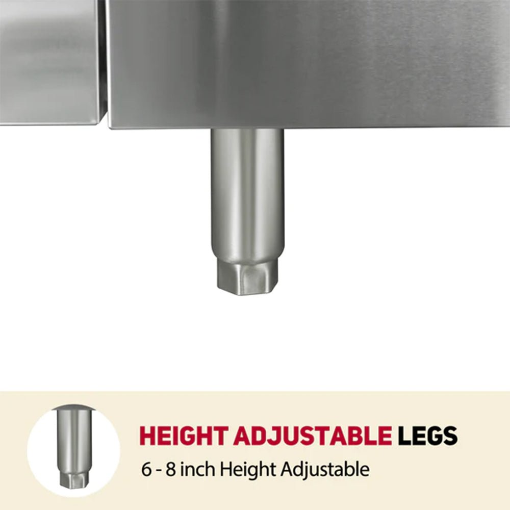 • Our gas stove has independent galvanized alloy knobs for each burner, allowing chefs to finely adjust the temperature. Non-slip, height-adjustable legs are included for stability and convenience, making your kitchen space both comfortable and efficient.
