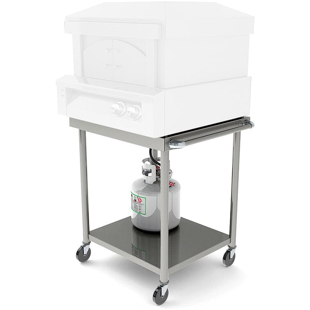 Our sturdy pizza oven cart creates mobility for your pizza oven when counter space is at a premium.