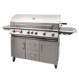 Included is a versatile cart with doors that allow easy access to your propane tank or other grilling accessories you may want to store underneath your grill. It also provides adequate food preparation space utilizing stainless steel shelves on either side of the grill. This grill cart makes for the ultimate grilling station with its extra storage space and ability to be portable in your backyard or patio.