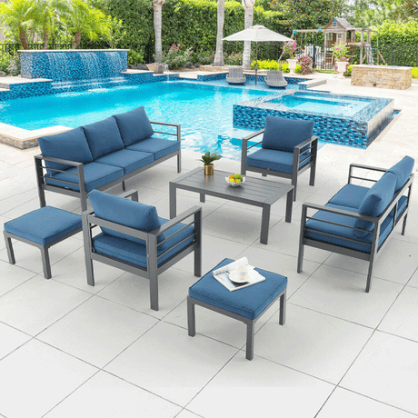 Aluminum Outdoor Furniture Patio Set W/ Cushions, 7PCS