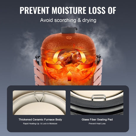 24" Ceramic Portable Round Outdoor Barbecue Smoker Grill For Patio (93820572)