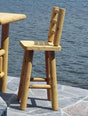 What better way to enjoy a drink overlooking the lake than perched on this fabulous log bar stool? With a comfortable back and convenient bar height, it matches either of our pub tables. Made from white cedar the well defined grain and knots enhance its rustic appeal. Either left unfinished or stained it's a real thing of beauty. Chairs sold individually. Table not included.