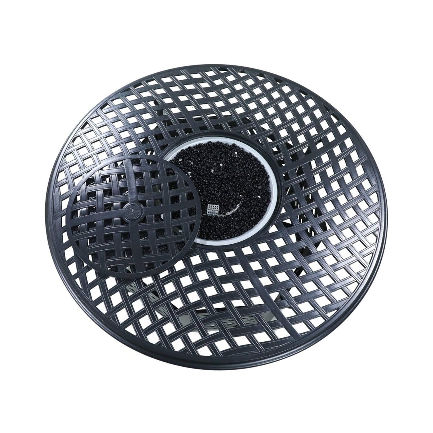- Adorned with a lattice-patterned tabletop, its design adds a touch of modern flair that captivates and complements any outdoor environment. Its elegance is truly timeless, ensuring your space remains at the forefront of style.