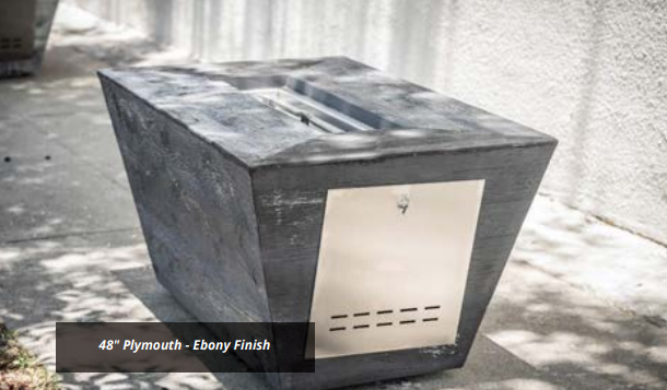 - Dimensions: Top: 48" x 28", Base: 38" x 18", Height: 16" or 24", Burning Area: 30" x 10"