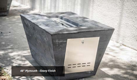 The Outdoor Plus Plymouth Rectangular Wood Grain Concrete Fire Pit + Free Cover