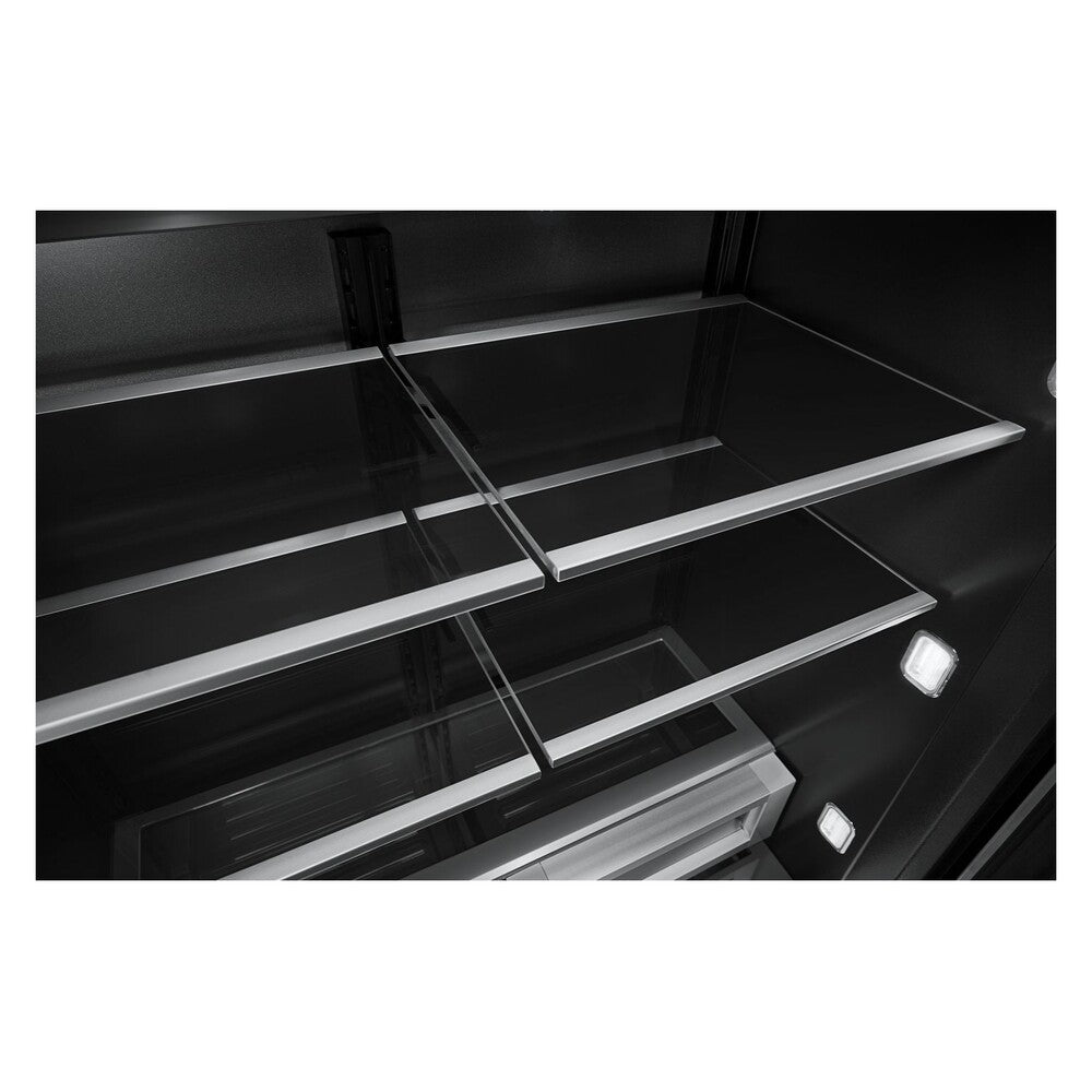 Showcase your ingredients with full-width glass and metal shelves. The clear glass allows light to filter through the substantial shelves, enhancing the visibility of everything inside the refrigerator.