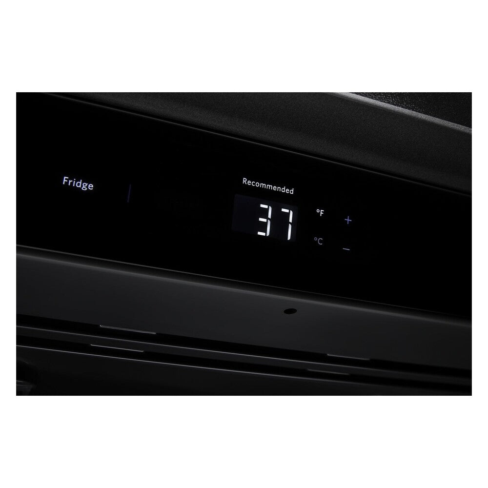 Exclusive Obsidian interior dazzles guests as food item colors pop, even in matching crisper drawers and the freezer.