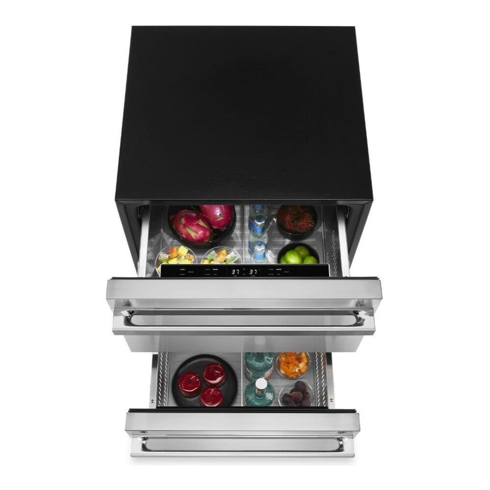 JennAir NOIR 24 inch Double Drawer Refrigerator with 4.7 cu. ft. Capacity, Obsidian Interior and Smooth Close Drawers in Stainless Steel, JUDFP242HM
