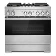 JennAir NOIR 36 inch Dual Fuel Professional Range with 5.1 cu. ft. Oven Capacity, 4 Burners, Grill, Remote Access, Glide Racks, Cast Iron Grates, Cinematic Oven Lighting, and Sabbath Mode in Stainless Steel, JDRP636HM