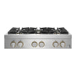 JennAir RISE 36 inch Gas Rangetop with 6 Sealed Burners, Halo Effect Knobs, Electronic Ignition with Flame Sensing Reignition, in Stainless Steel, JGCP436HL