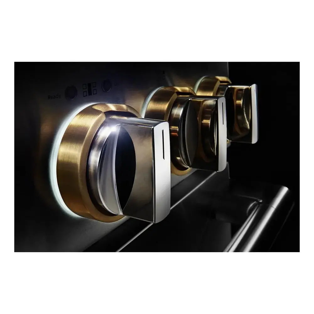 Precise, dual flames produced by precision-drilled brass burners. Inside the oven cavity, steady heat weaves around each flat tine. From searing select cuts and simmering sauces to succulent roasts, these ranges offer unmistakable firepower.