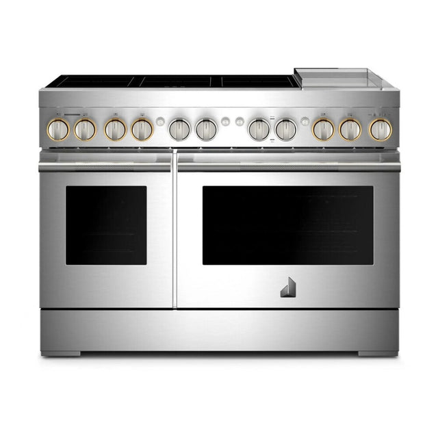 JennAir RISE 48 Inch Freestanding Induction Smart Range with 6 Elements, 6.3 cu. ft. Oven Capacity, Flex-Choice Zones, Chrome-Infused Griddle, Dual-Fan True Convection and Pan Detection in Stainless Steel, JPIGC748RL