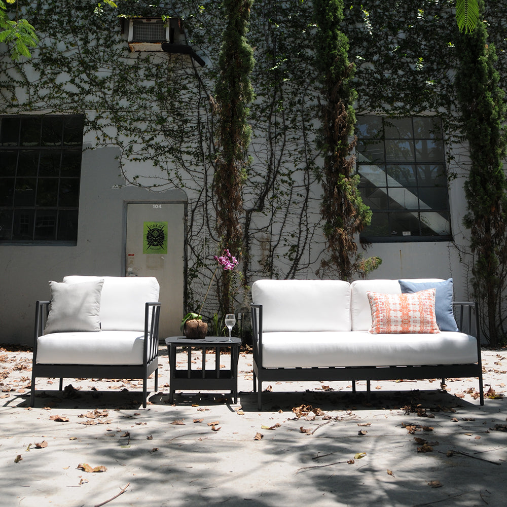 The Oslo stands for elegance and modernity. This collection perfectly reflects designer Luis Alejandro Blasini’s meticulous attention to detail and thoughtful approach to design and color. Its sleek powder coated aluminum frames and the solid laser cut aluminum tabletops, give this collection its unique distinctive character. The exposed aluminum elegantly designed with comfortable cushions covered in Sunbrella fabric make for a luxurious outdoor ambiance.
