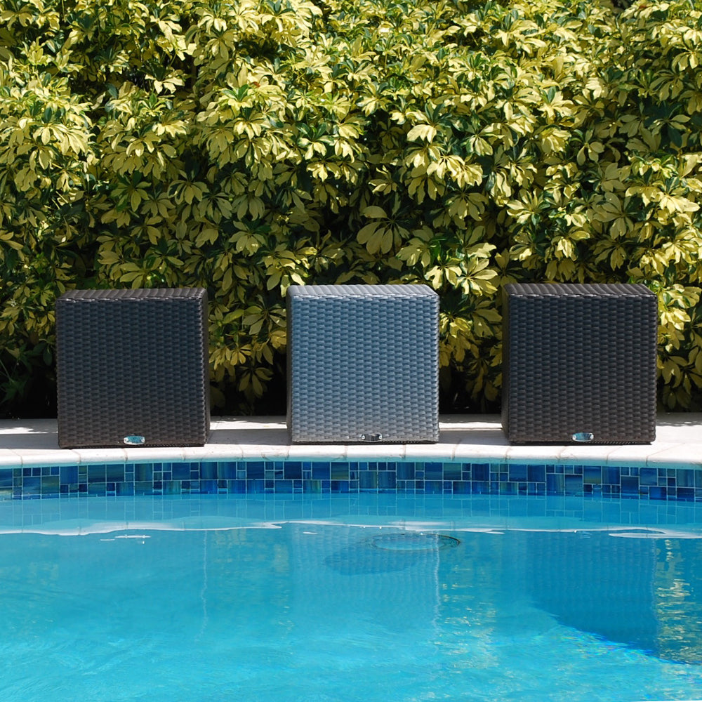 Design, Functionality, Durability and Harmony were the core elements in the design of the Panama Stool. A small and versatile cube which can be matched with any of our collections. Made in lightweight powder-coated aluminum and hand-woven in all-weather wicker that is easy to maintain.
