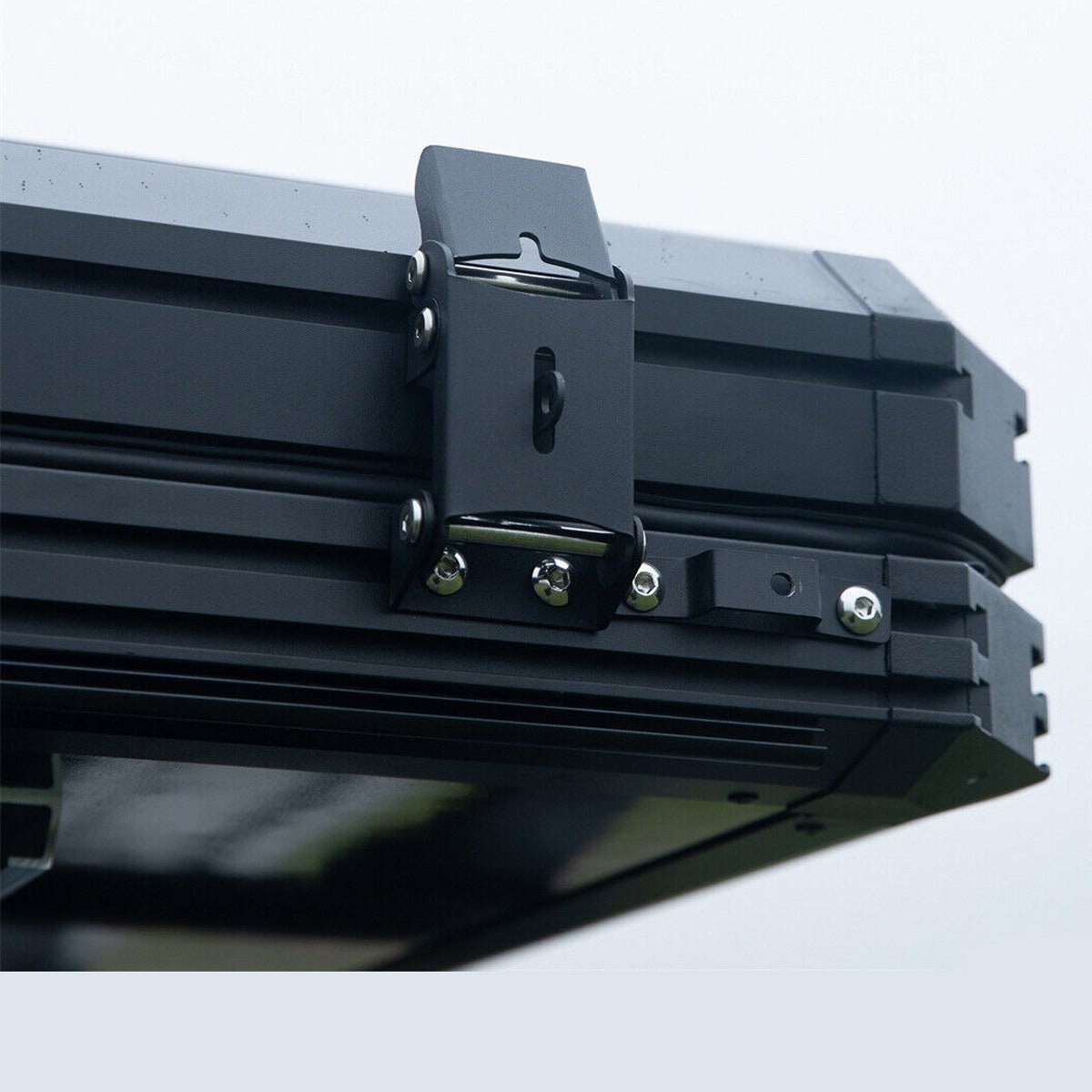 Additionally, the tent has three exterior openings with lockable latches and black ladders. Plus, a fly screen keeps in fresh air while cutting out condensation, keeping it light and breezy inside all through your adventure. And don’t forget the internal storage chest for storing key items such as phones, wallets, or keys plus a waterproof shoe storage bag located just above! And not only that—this tent even comes with LED light strips so you can safely explore in the wee hours of the night.