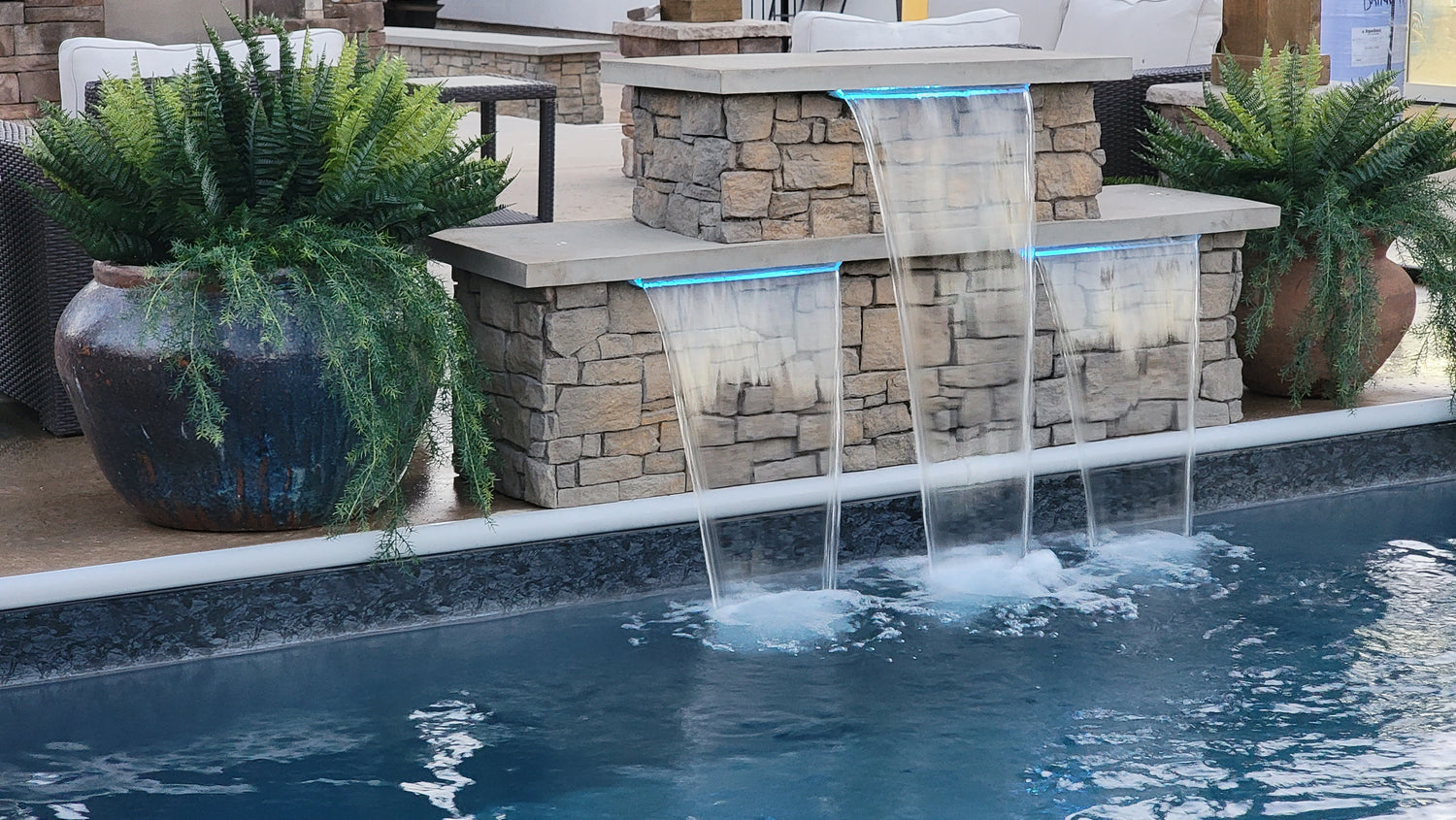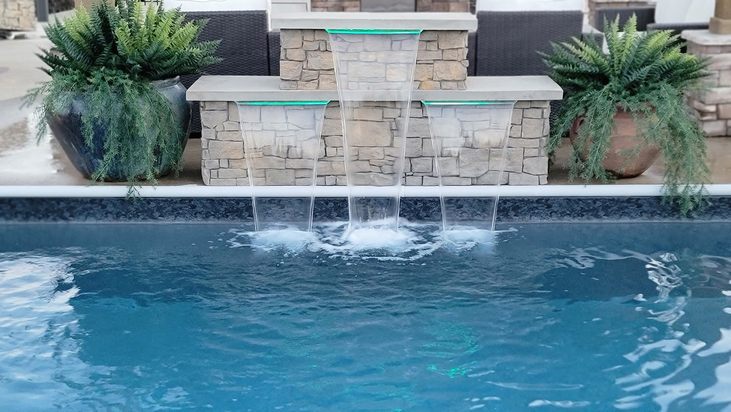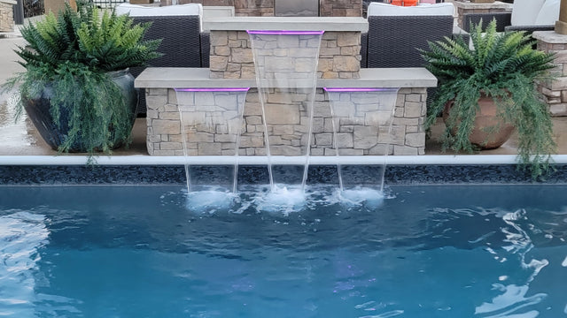 Victoria Falls is an exquisite pool waterfall feature that exudes elegance and tranquility. This cascading water feature is designed to mimic the majestic flow of the iconic Victoria Falls, creating a captivating and immersive aquatic experience. The waterfall seamlessly integrates into the pool landscape, providing a visually stunning focal point. The gentle sound of the waterfalls adds a soothing ambiance to any outdoor setting, transforming a regular pool into a serene oasis. The Victoria Falls pool waterfall feature combines artistic design and functionality, offering a touch of modern beauty to enhance the overall ambiance of your pool area.