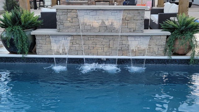 Victoria Falls is an exquisite pool waterfall feature that exudes elegance and tranquility. This cascading water feature is designed to mimic the majestic flow of the iconic Victoria Falls, creating a captivating and immersive aquatic experience. The waterfall seamlessly integrates into the pool landscape, providing a visually stunning focal point. The gentle sound of the waterfalls adds a soothing ambiance to any outdoor setting, transforming a regular pool into a serene oasis. The Victoria Falls pool waterfall feature combines artistic design and functionality, offering a touch of modern beauty to enhance the overall ambiance of your pool area.