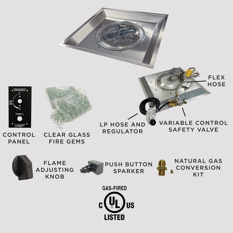 The Outdoor Greatroom Crystal Fire Plus Square Gas Burner Insert and Plate Kit - BP24S-A