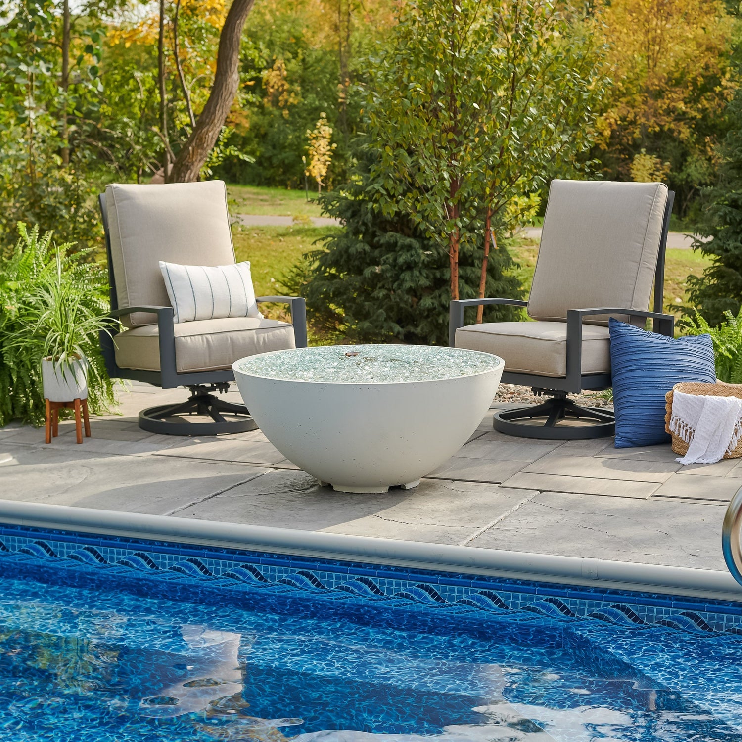 - Clear Tempered Fire Glass Gems Included – Enhances flame brilliance while providing a clean, upscale look for outdoor entertaining spaces