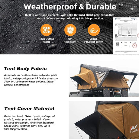 Naturnest Sirius 2 Premium 3XL 4-Person Clamshell Roof Top Tent (SAK91382)