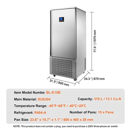 370L Commercial Freestanding Blast Freezer With 15 Trays For Chilling Seafood & Gelato (SAK98170)
