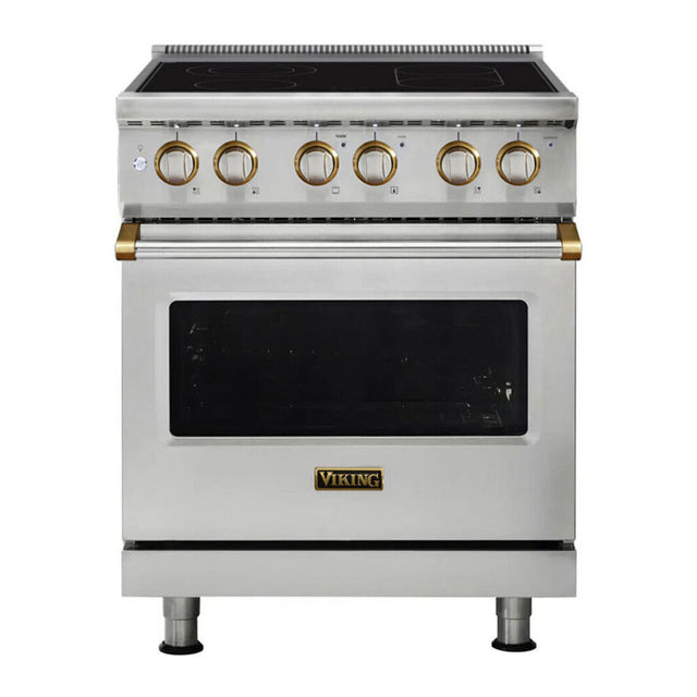 Viking 5 Series 30 inch Electric Self-Clean Range with 4 Elements - VER53014B* - Stainless Steel with Brass is backordered and will ship as soon as it is back in stock.