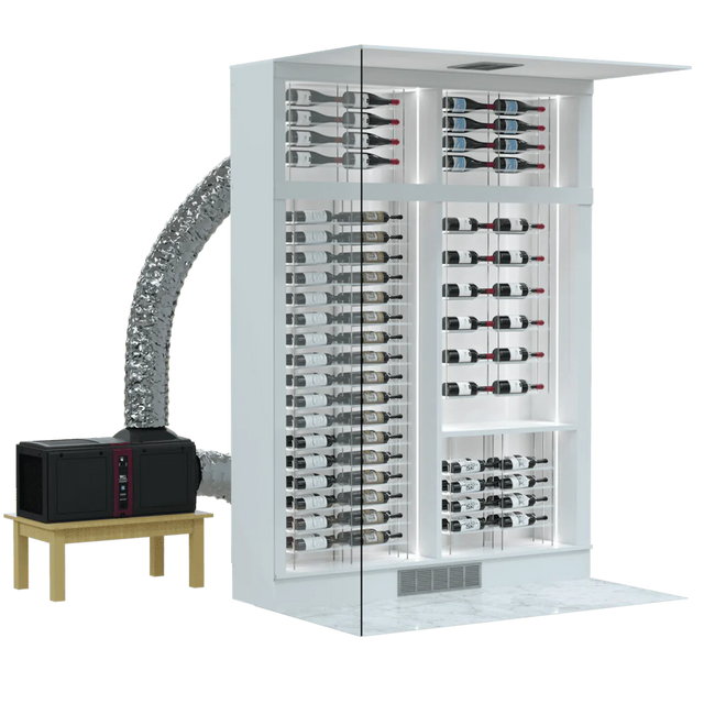 Relish in the quietness of your wine room with no obtrusive equipment taking up valuable wine racking space. Ducted wine cellar cooling systems are designed to be installed in a space outside the wine cellar, keeping your wine cool and your cellar quiet, beautiful, and efficient.