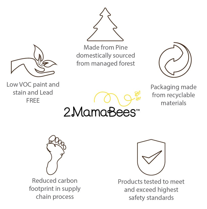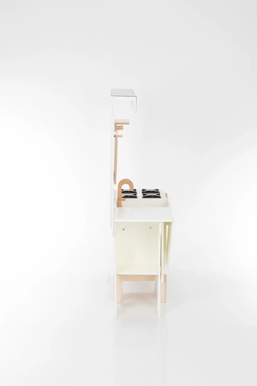 2MamaBees Aviana Gourmet Play Kitchen will create hours of sensory play while also helping your little one explore the world of imagination. The beautiful white and black farmhouse design will create a stunning addition to any indoor play space. The Aviana Gourmet Play Kitchen includes chalkboard with built-in magnets to secure inside oven door. The stove and faucet handles turn and click for sensory play.