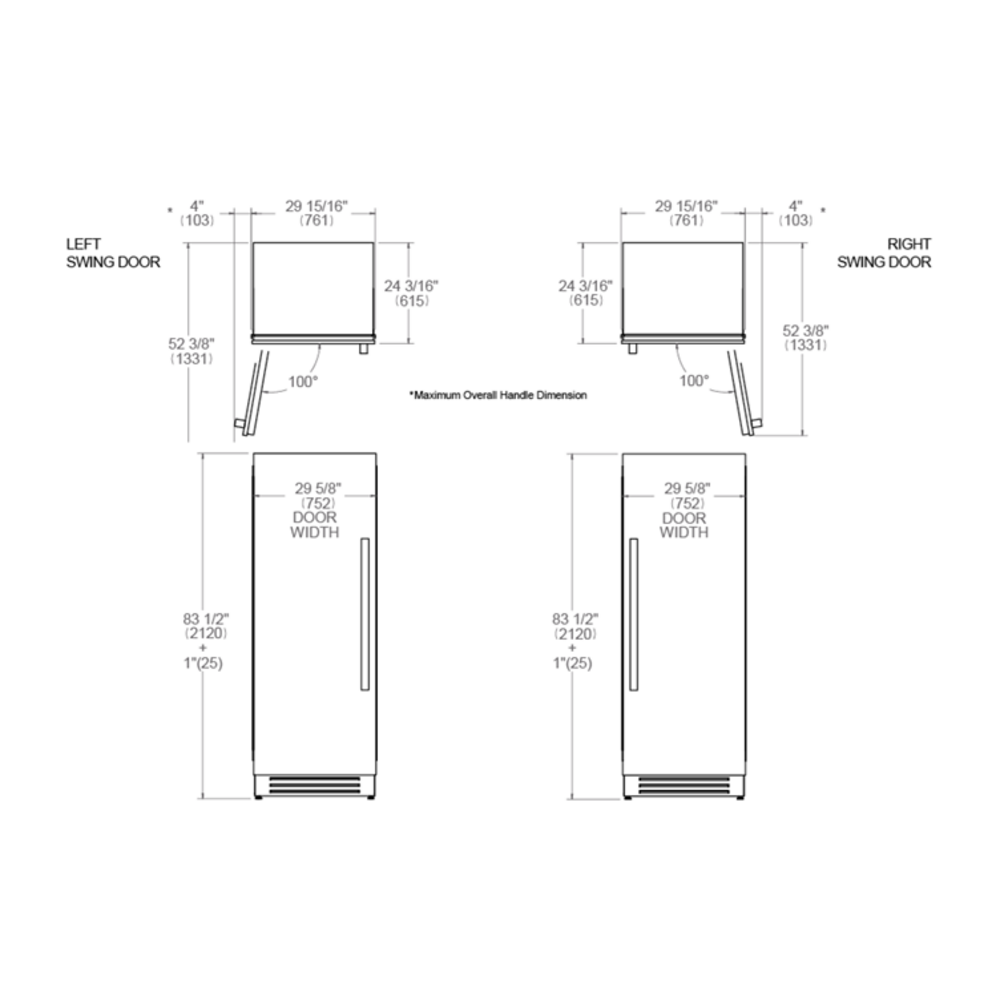 Proprietary lift & swing hinges allow for flush installation with minimal clearance from surrounding cabinet panels. This allows for elegant configurations of refrigerator, freezer and wine cellar in any desired width. All three columns work in harmony with handles and finishes available for every Series.