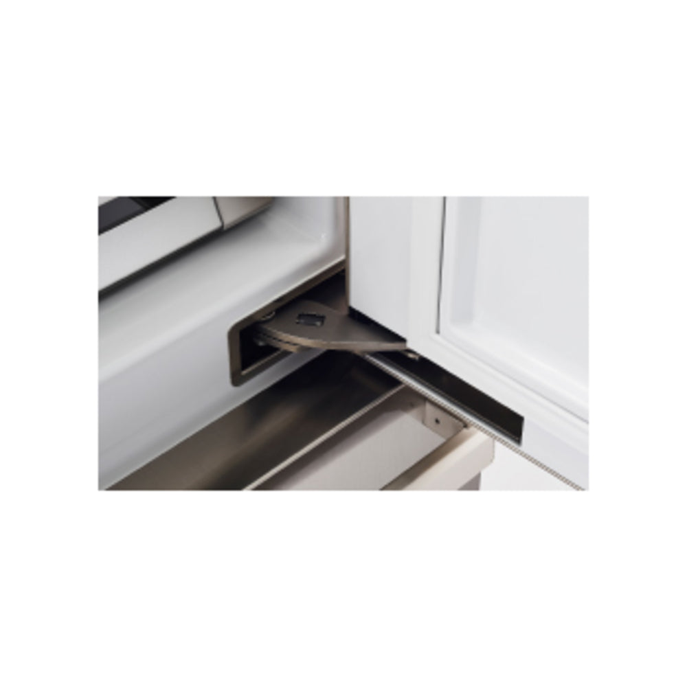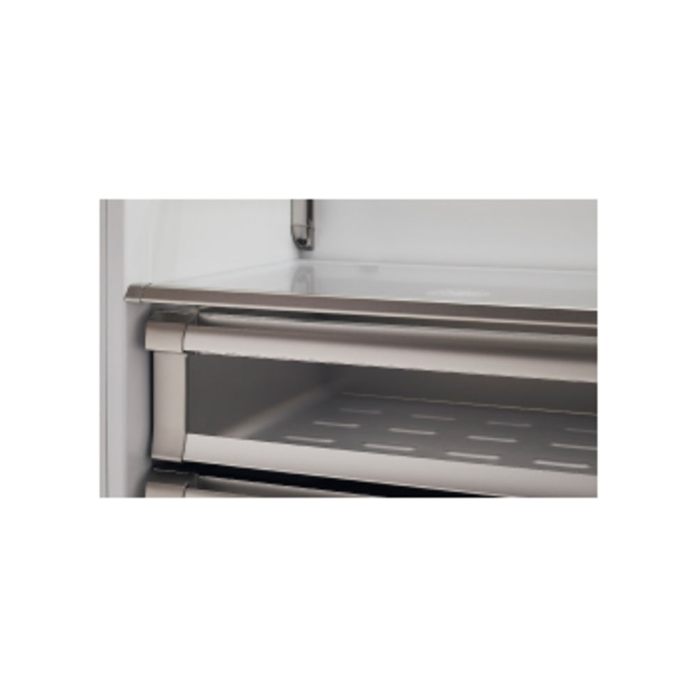 These built-in refrigerators are built to last, employing metal and glass inside and out for better temperature management. The lateral airflow system, with dual compressor and evaporator for refrigerator and freezer, reduces cold air loss when opening doors and allows for category-leading interior depth. The internal configuration is designed for maximum flexibility, with 15 cubic feet of refrigerator volume and 4.6 cubic feet of FlexMode volume. The FlexMode Refrigerator-Freezer allows to switch the bottom compartment between freezer, fresco and refrigerator with one touch. Interior LED lighting on top and sides provide bright interior illumination on all levels with minimal energy consumption. Integrated water filter connected to water line ensures regular production of clean ice cubes of customizable size.