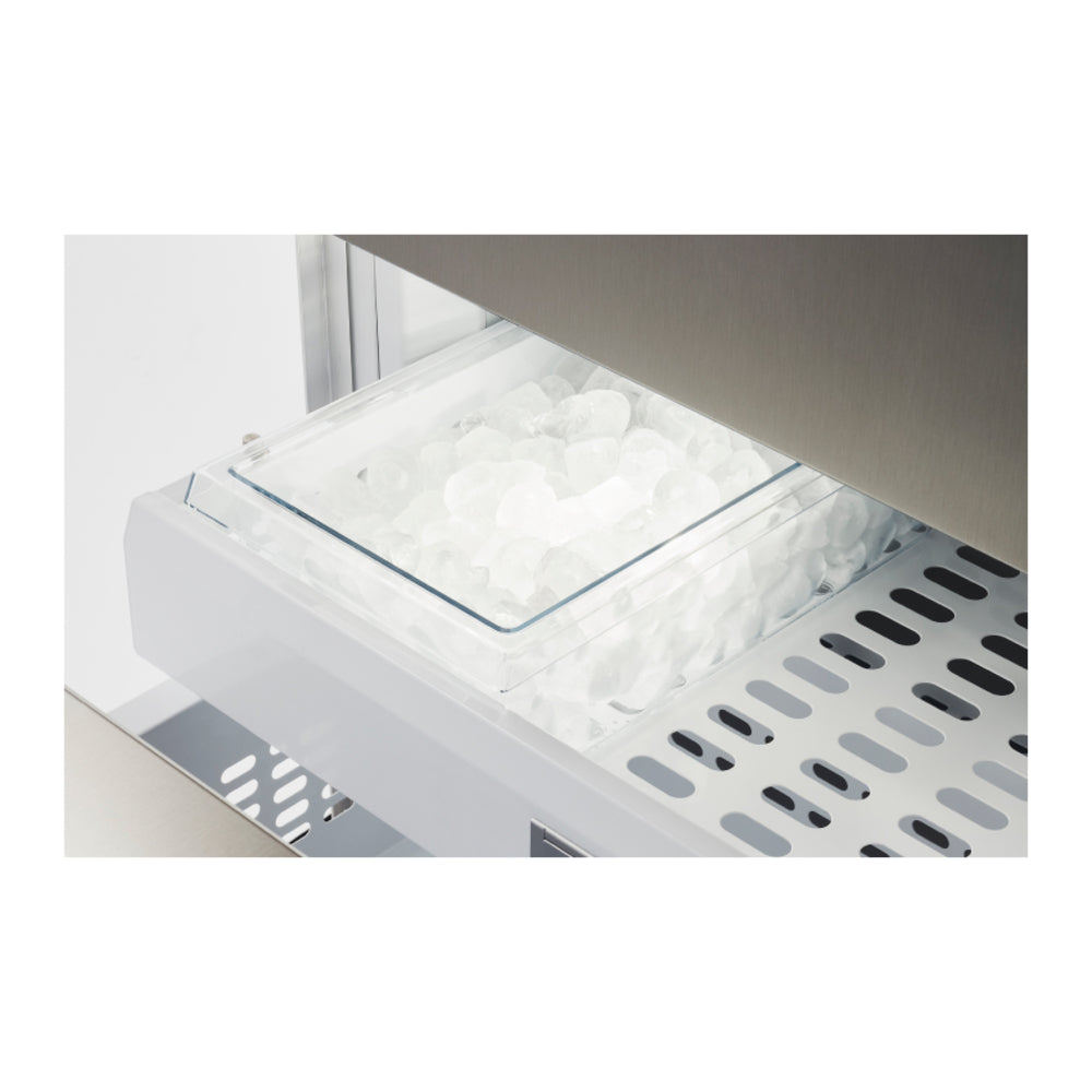 - Automatic custom ice maker with control for ice cube size. Integrated water filter located in the low temperature section ideal for hygienically clean ice.