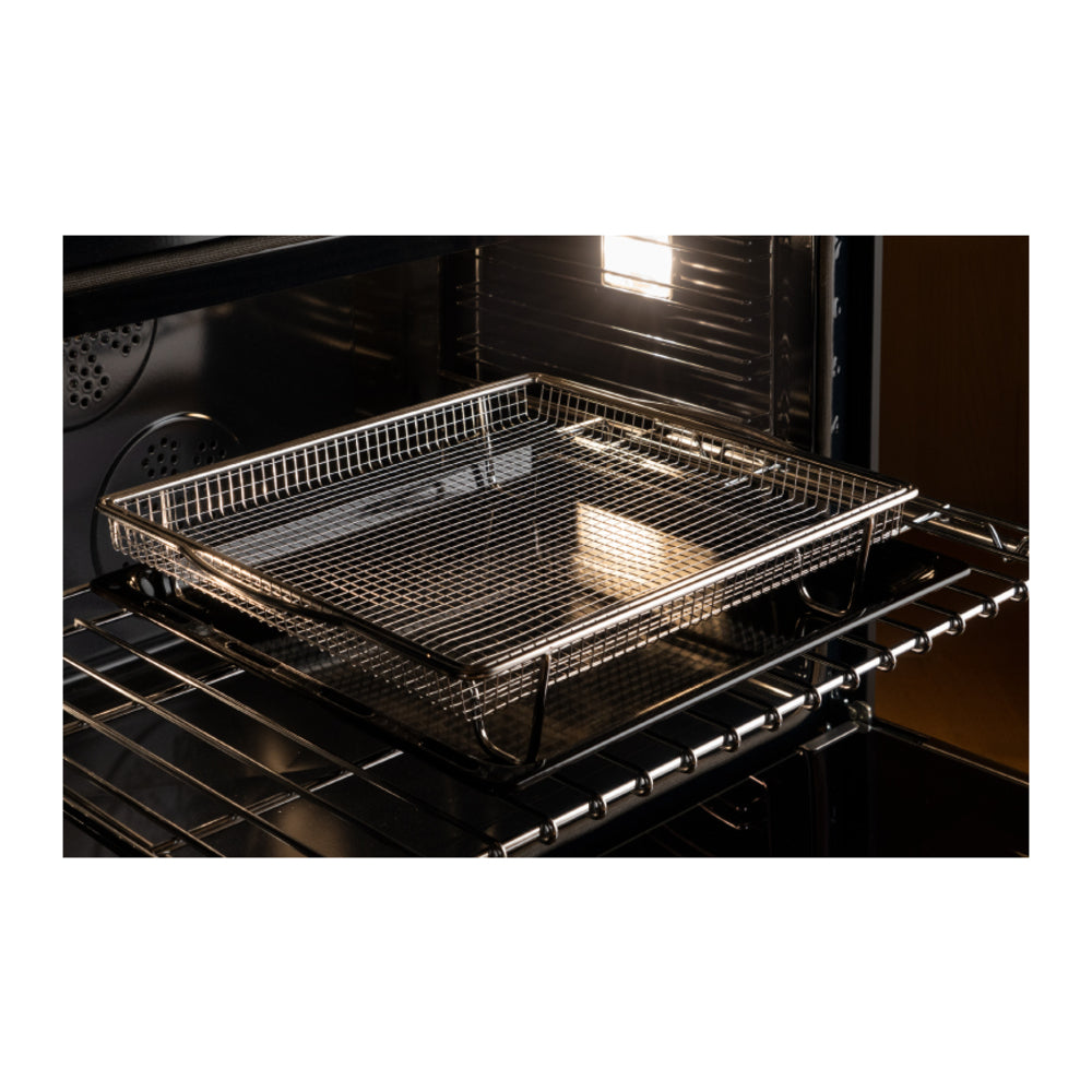 The elegant digital gauge gives precise control of oven temperature during pre-heating, roasting and baking, and has integrated controls for the food temperature probe. This range comes with a dedicated air-frying mode for healthier cooking, to be used with the included stainless steel mesh basket.