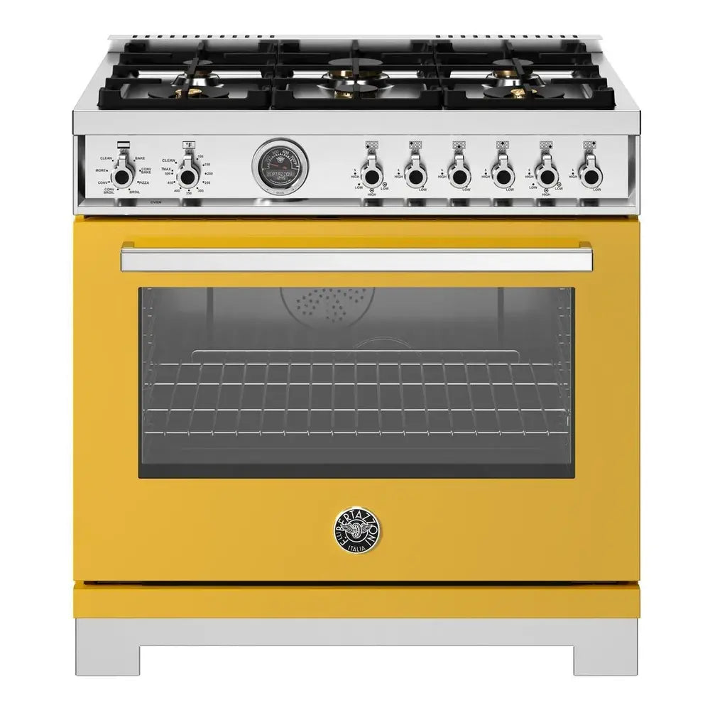 36 inch Dual Fuel Range, 6 Brass Burners and Cast Iron Griddle, Electric Self-Clean Oven, Professional Series