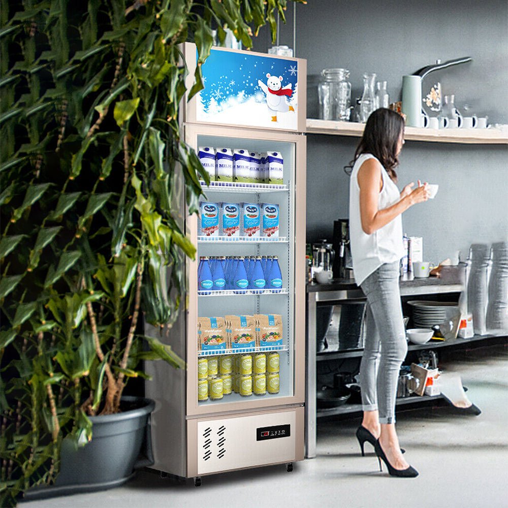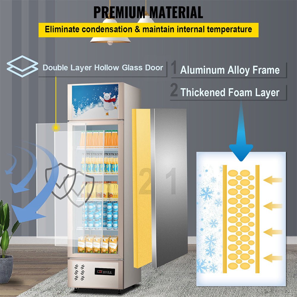 - The commercial fridge has a premium-grade glass front and thickened foaming layer to help eliminate condensation and maintain internal cabinet temperatures, which help maintain glass clarity.