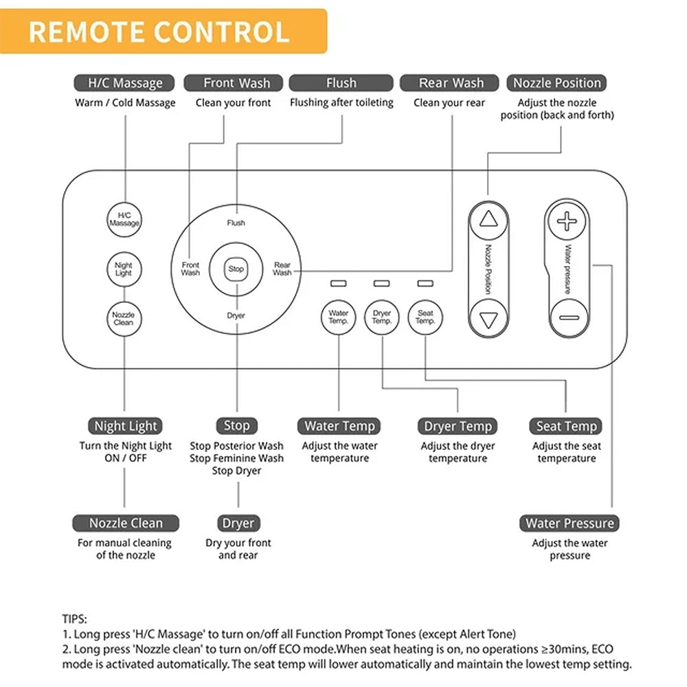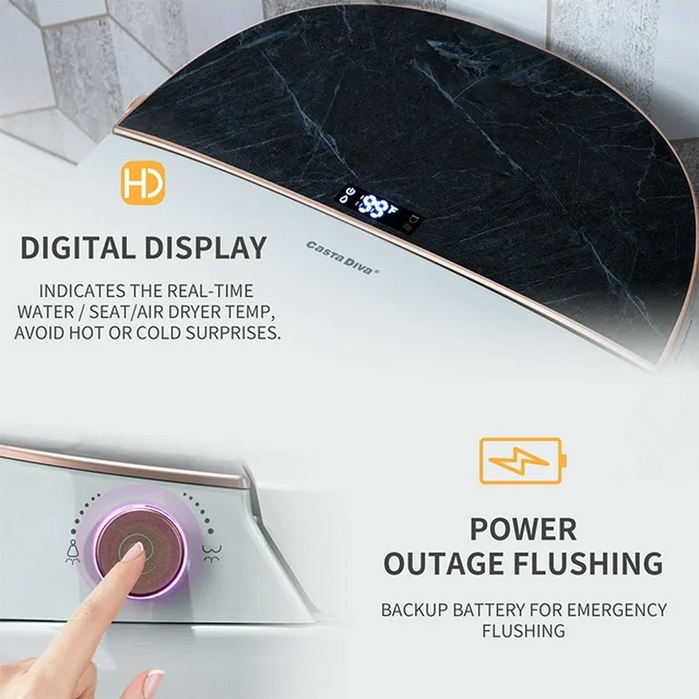 - Experience the luxury of a built-in warm water bidet with boundless options, from temperature settings to washing position adjustments to water pressure - all at your fingertips!