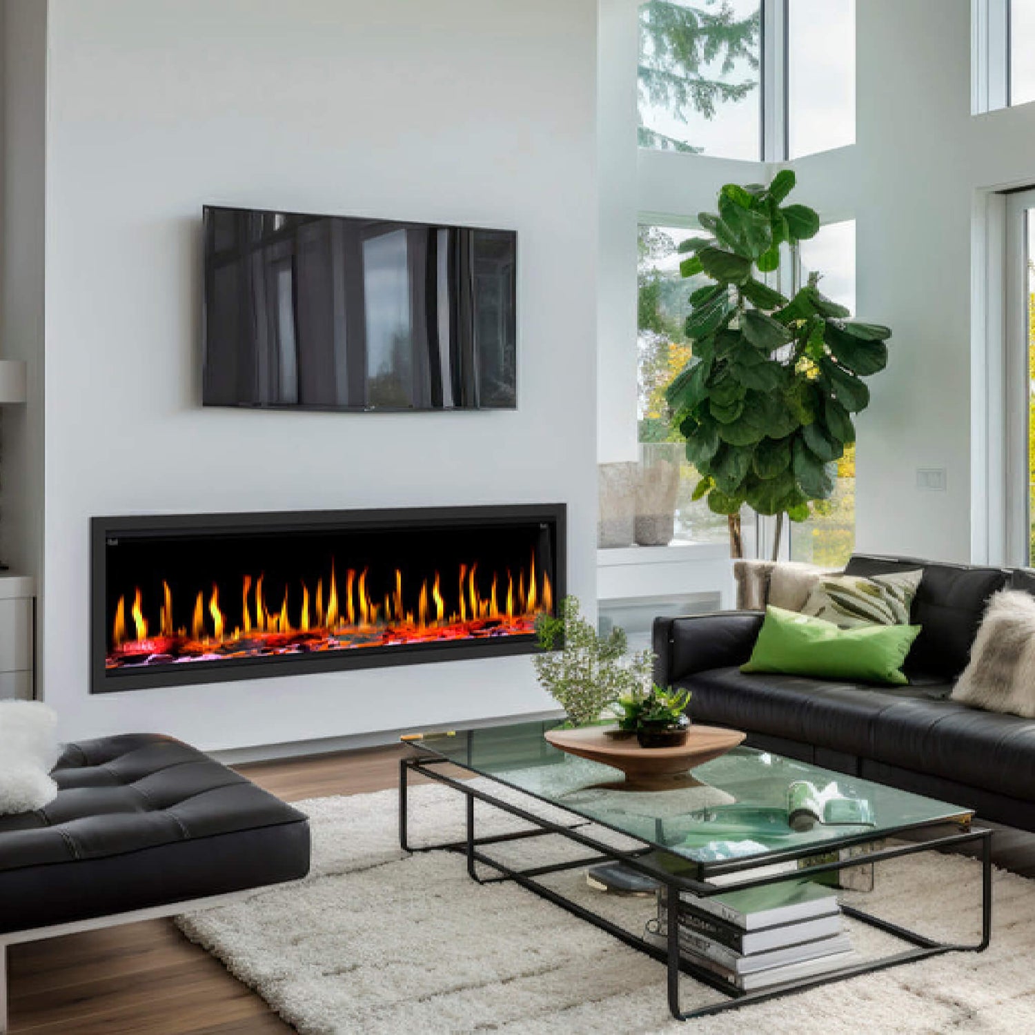 Bring warmth and style to any room with the Tempo Series Virtual Fireplace. Featuring incredibly realistic flames with customizable colors, brightness, and styles, this versatile electric fireplace effortlessly elevates your home or commercial space. Its sleek design and flush-mount installation make it a seamless addition to any decor.