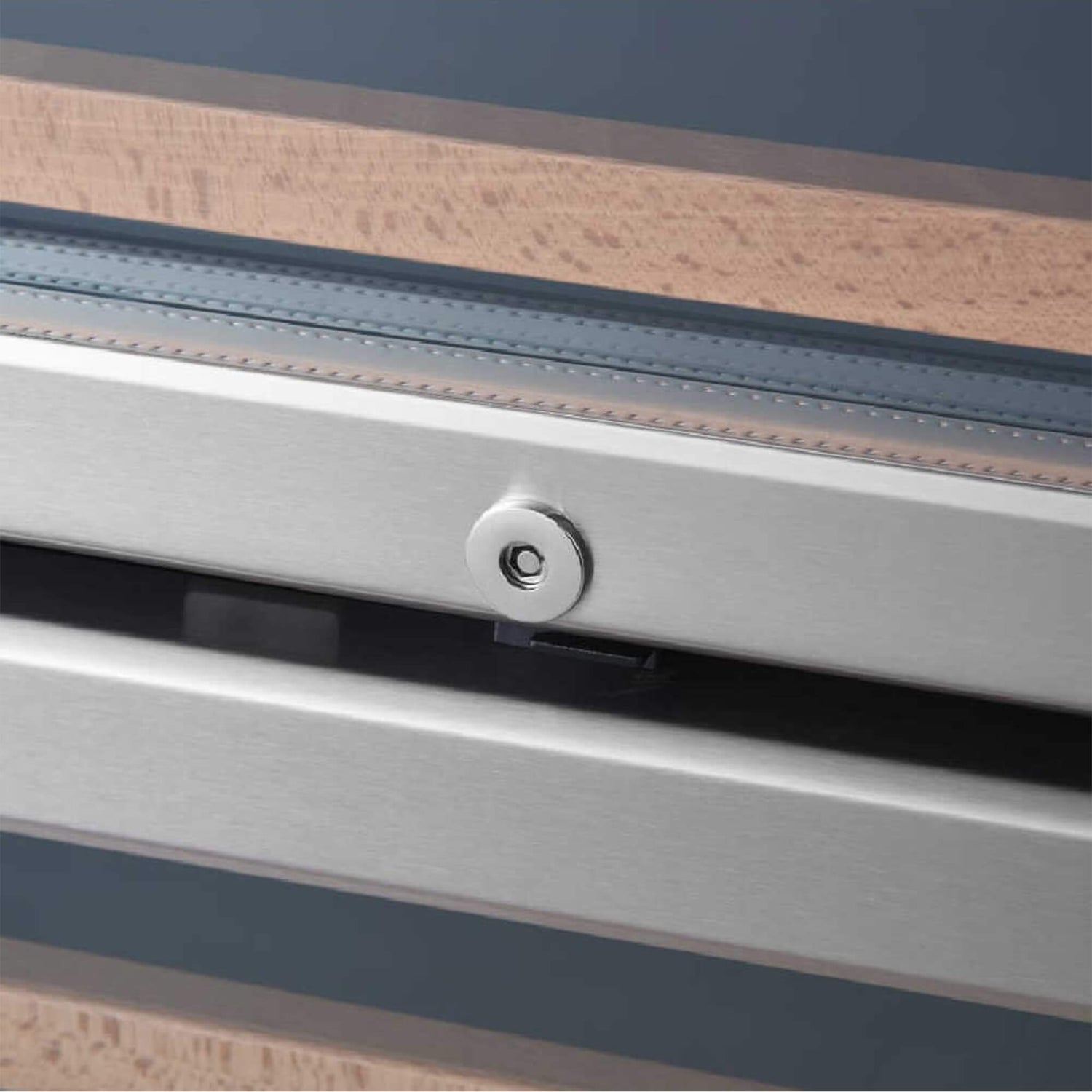 - Sleek stainless steel trim, soft LED interior lighting, and slide-out wood trim wine racks complement any décor.