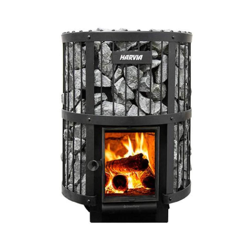 - With its large glass door, this stove offers a mesmerizing view of the flames, enhancing the tranquil ambiance of your sauna. The sleek black steel construction not only looks stylish but is also built to last.