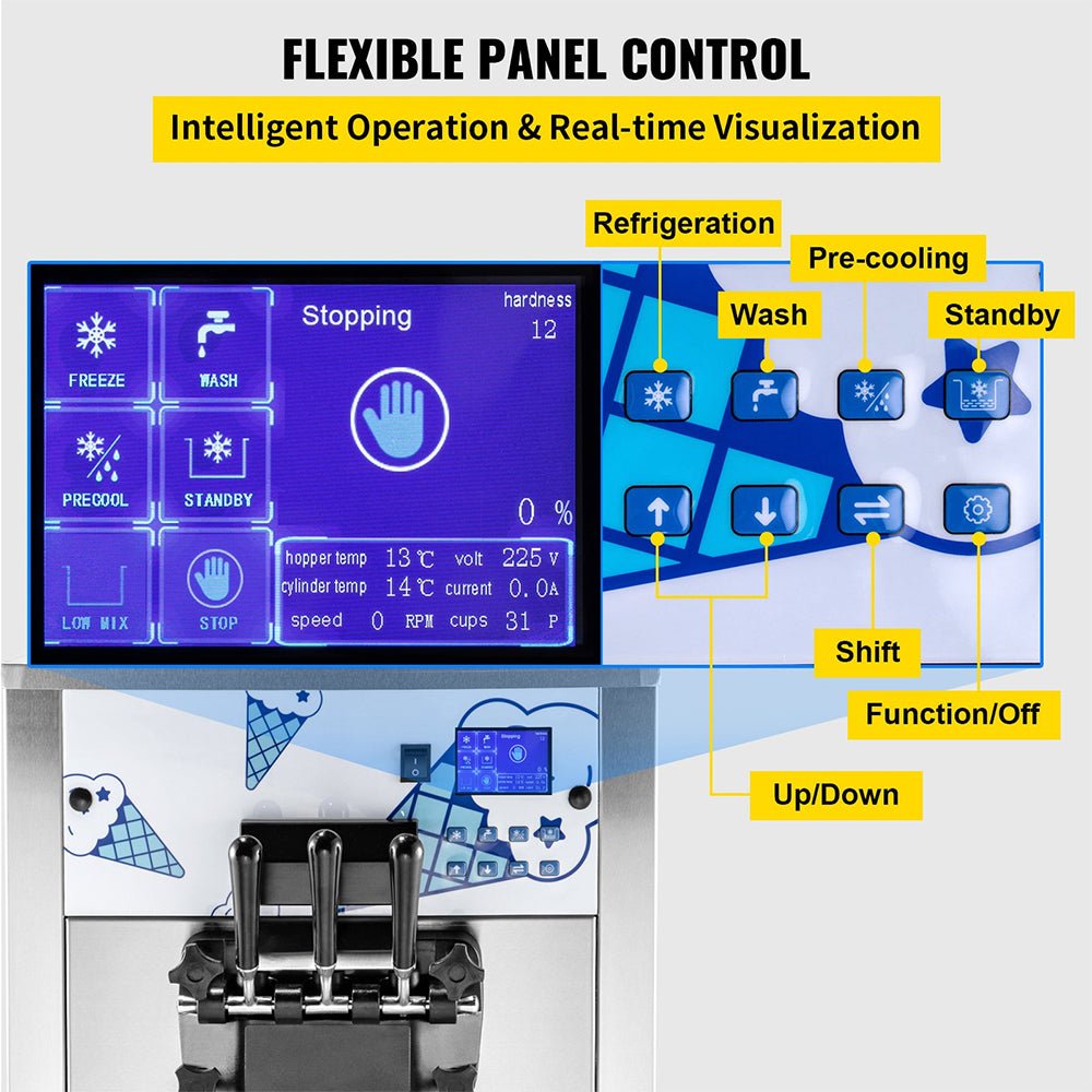 - Enjoy the effortless and stable performance with our Heavy Duty Commercial Soft Serve Ice Cream Machine! Featuring a robust 2500-watt compressor and radiator, you'll benefit from uninterrupted power, reduced noise, and energy efficiency. Plus, it's user-friendly!