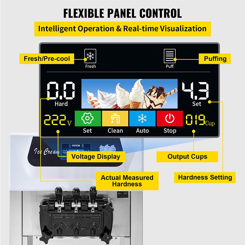 - Our soft-serve ice cream machine integrates 3 flavors to meet various tastes, including 2 single flavors and 1 mixed flavor. During mixing, you can add your favorite foods, such as vanilla, strawberry, chocolate, mango, etc.