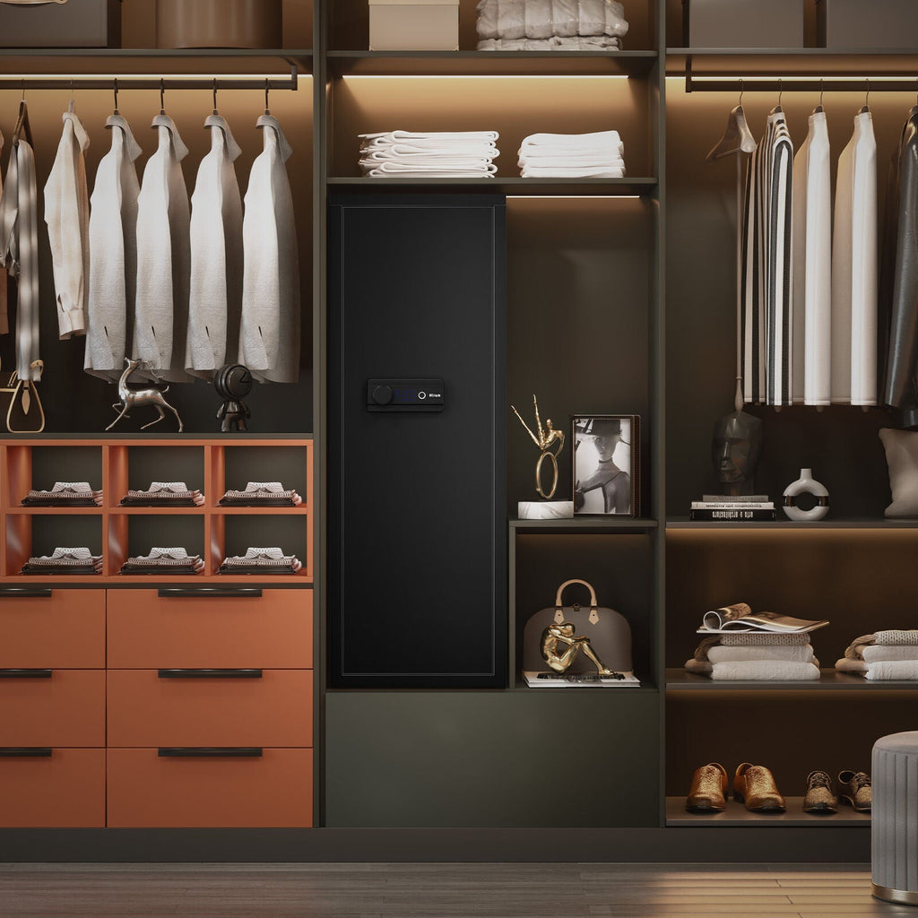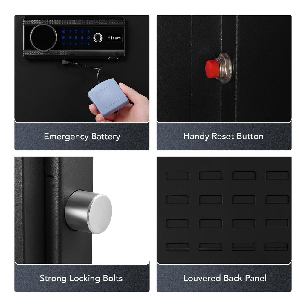 - Secure your possessions with our 19-gauge steel biometric gun safe! Four 0.8" locking bolts provide unparalleled resilience against any attempts to break-in.
