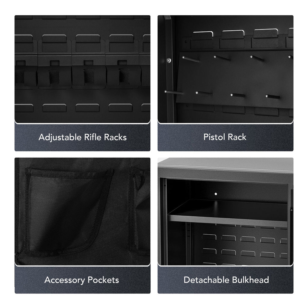 Easily tailor your storage by adjusting the tall gun holders with the louvered back panel!