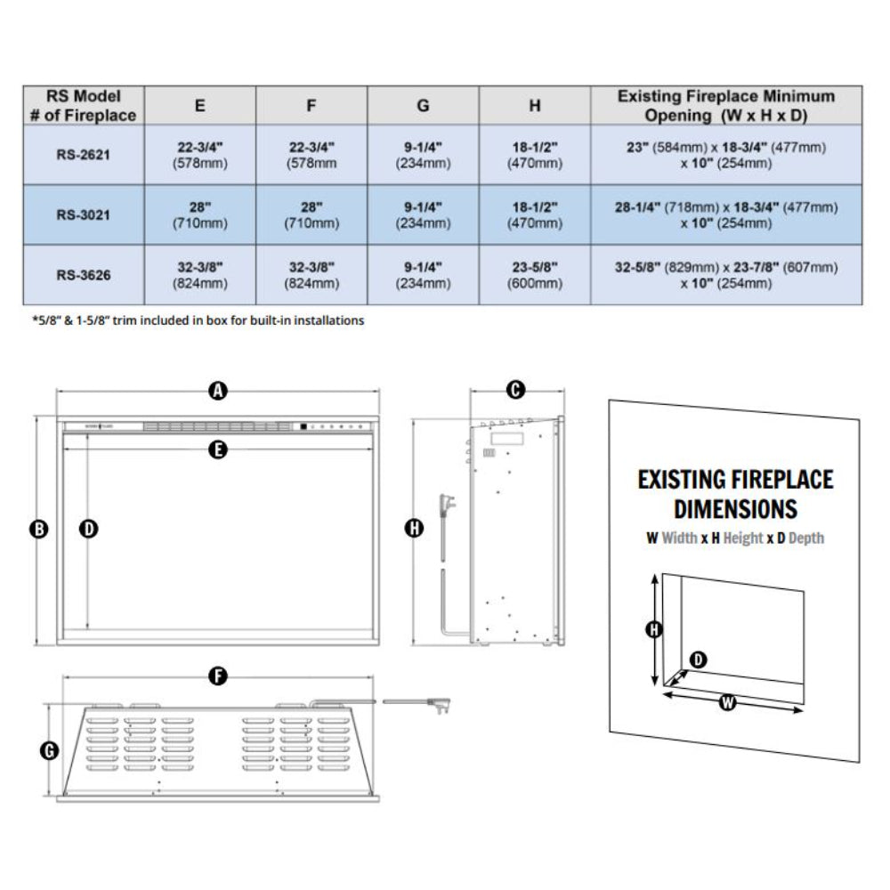 | Existing Fireplace Minimum Opening | 32 5/8" W x 23 7/8" H x 10" D |