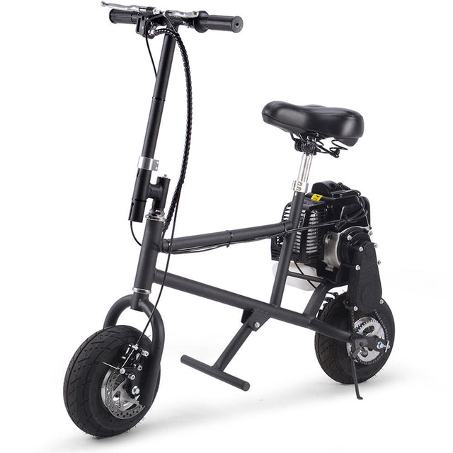 The MotoTec 49cc Gas Mini Bike is the ultimate kid ride! Great for driveway and parking lot fun, cruise around cones and speed through trails with ease. Comes standard with front & rear disc brakes and 10 inch pneumatic street tires.