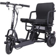 Introducing the Folding Mobility Scooter by MotoTec. Its compact, three wheel styling makes for a sharp turning radius, 2 hub motors built into the rear wheels provide amazing torque for riding up inclines with its light weight durable frame made from Aluminum.