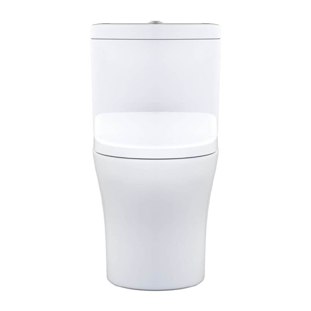 - Universally comfortable height, skirted trapway for easier cleaning, and a chrome center-mounted push button for water conservation options make this toilet both convenient and eco-friendly.