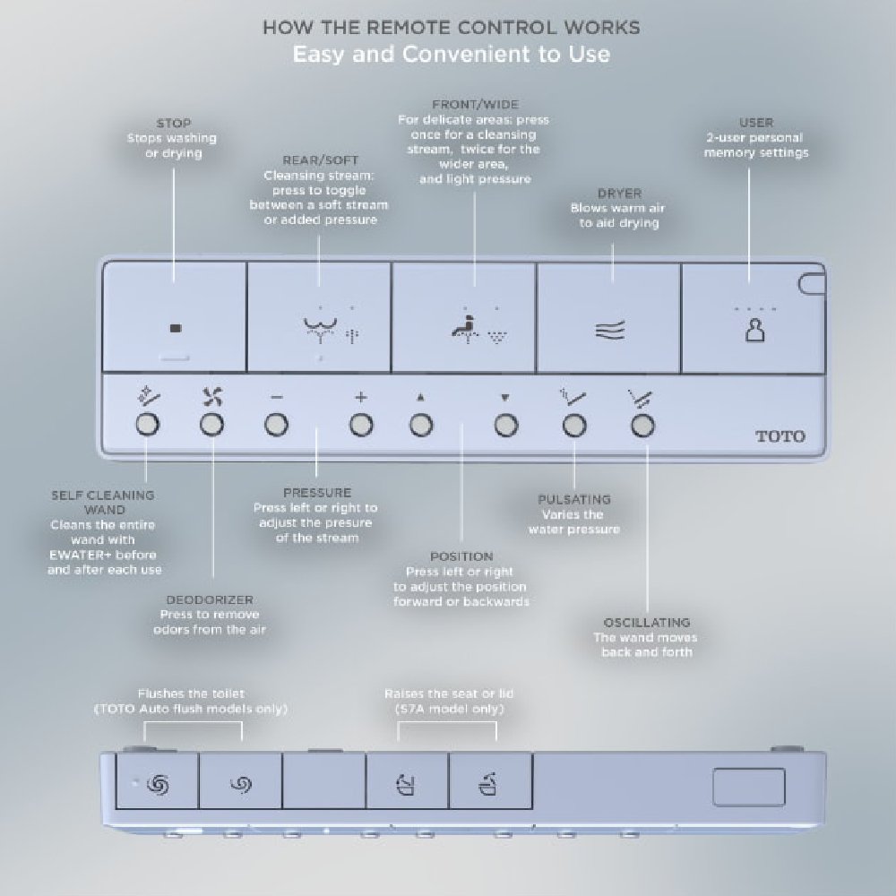 - With TOTO's EWATER+ system and PREMIST feature, this WASHLET+ effectively mists the wand and bowl, reducing the need for harsh chemicals and ensuring a thorough clean.